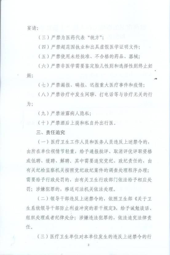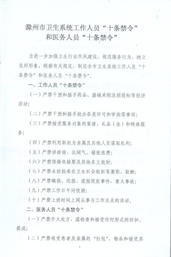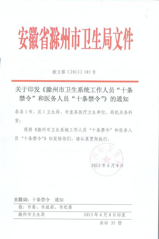关于印发《滁州市卫生系统工作人员“十条禁令”和医务人员“十条禁令”》的通知