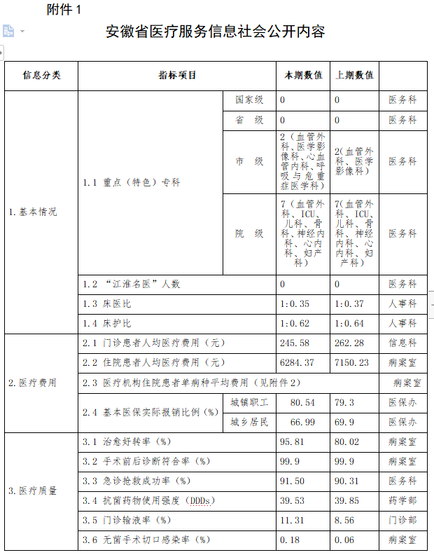 我院2023年第二季度服务公开